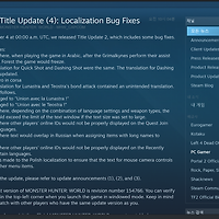 [몬스터헌터월드] 10월 4일자 버그 픽스 업데이트 (구글번역포함) (0) | 2018.10.04 |